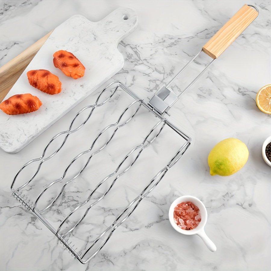 Kitchen BBQ Rack — Practical handle for a comfortable grip, easy to use for picnics and grilling.